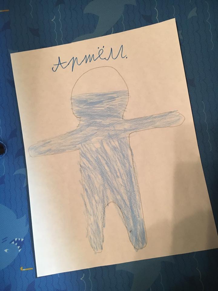 В пять лет Тема на просьбу нарисовать человека выводил овал во весь альбомный лист и говорил - "Вот это человек. Там все внутри".